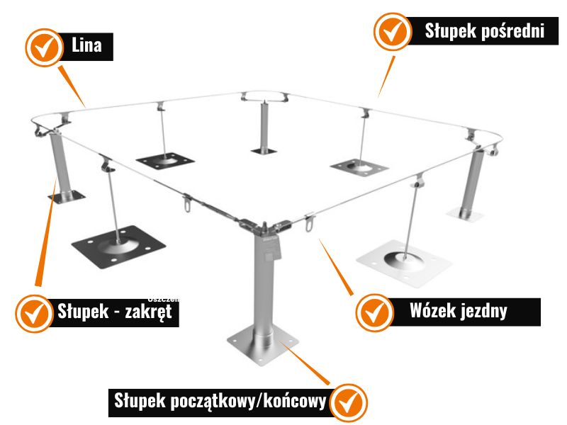 Wykonany z trwałych materiałów – stali nierdzewnej i aluminium – system jest odporny na korozję i intensywną eksploatację. Może obsługiwać do trzech użytkowników jednocześnie, zapewniając im bezpieczeństwo i płynność ruchów.