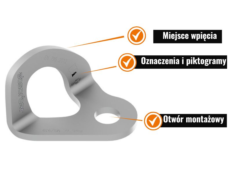 Konstrukcja punktu jest sztywna i nie wygina się podczas użytkowania pod naporem siły, gwarantując stabilność i pełną asekurację na wysokości. System umożliwia przypięcie jednego użytkownika i może być montowany zarówno do betonu, jak i konstrukcji stalowych.